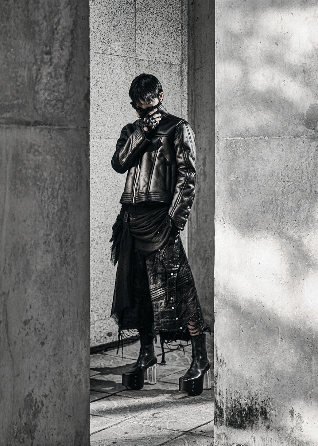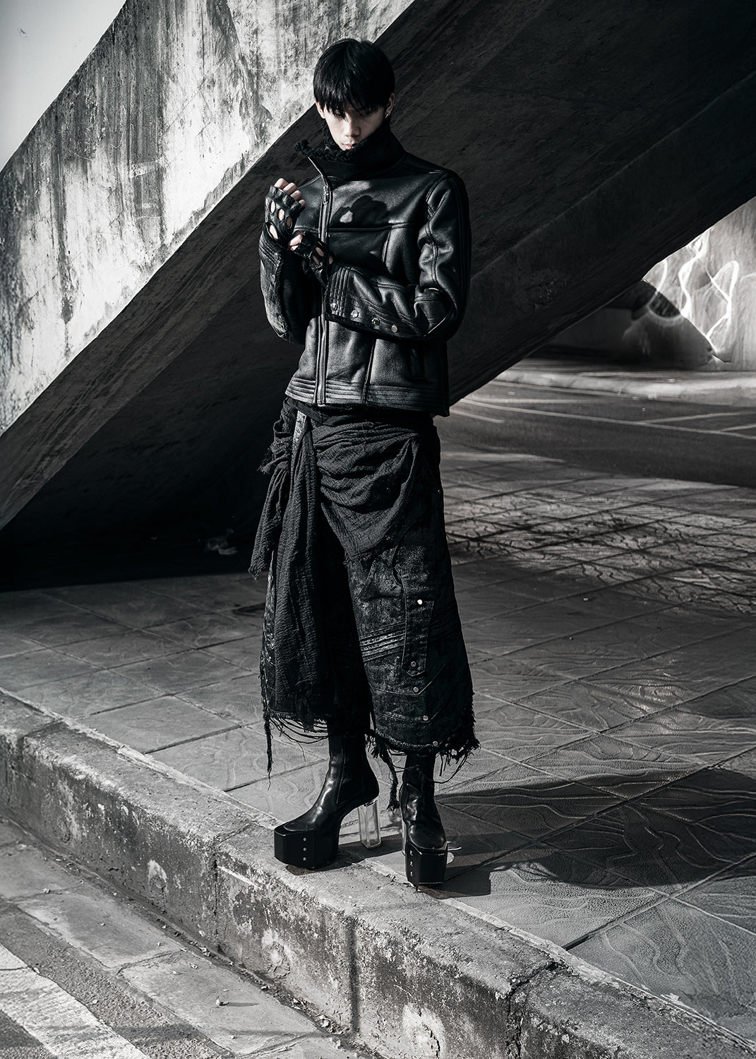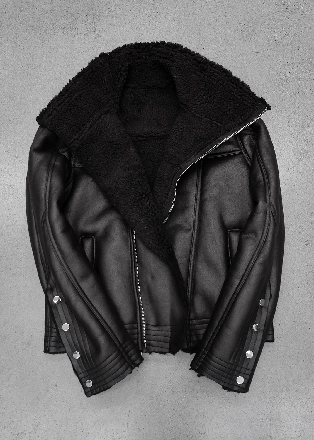 BLACK SHEARLING LEATHER JACKET - AK084B