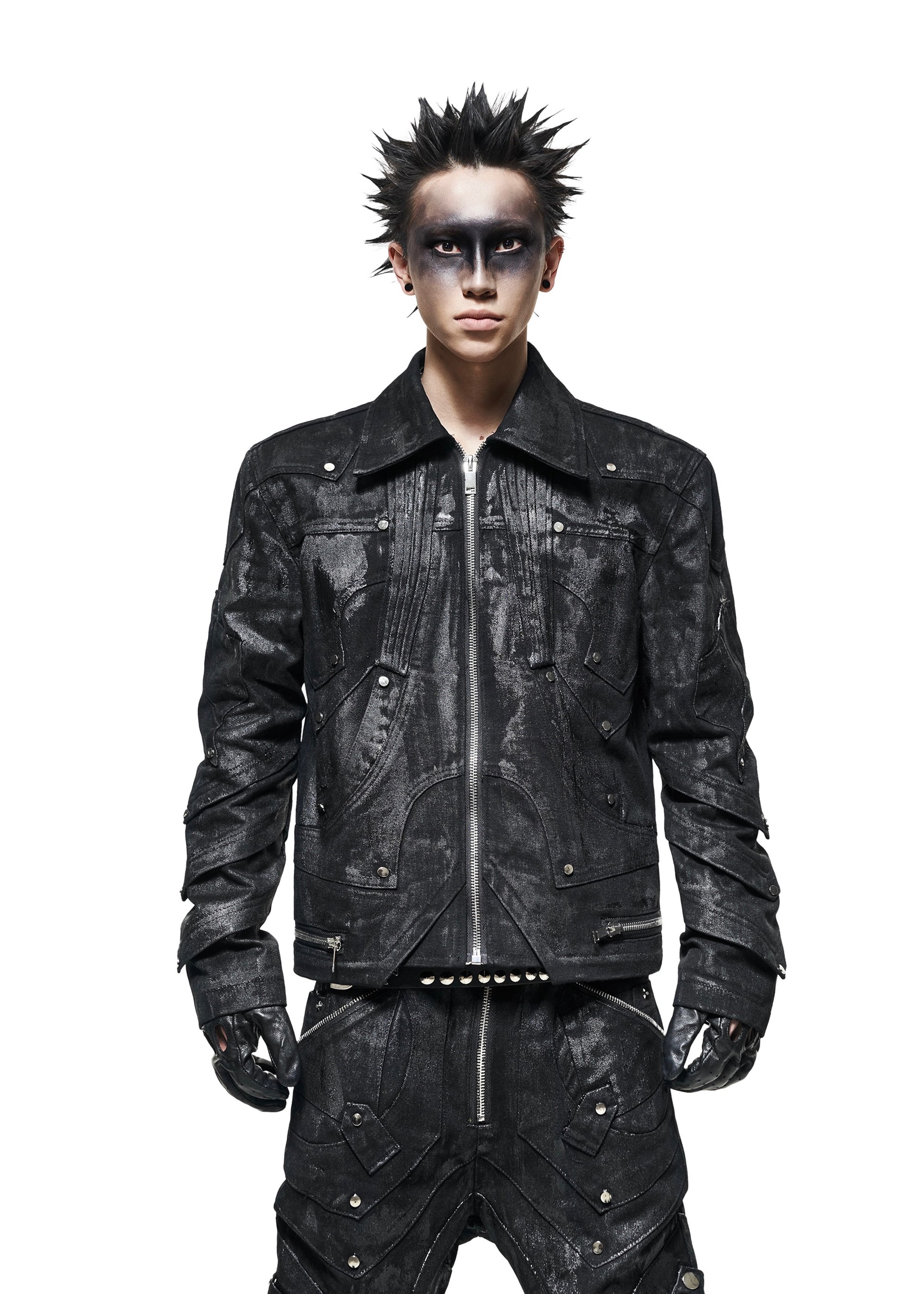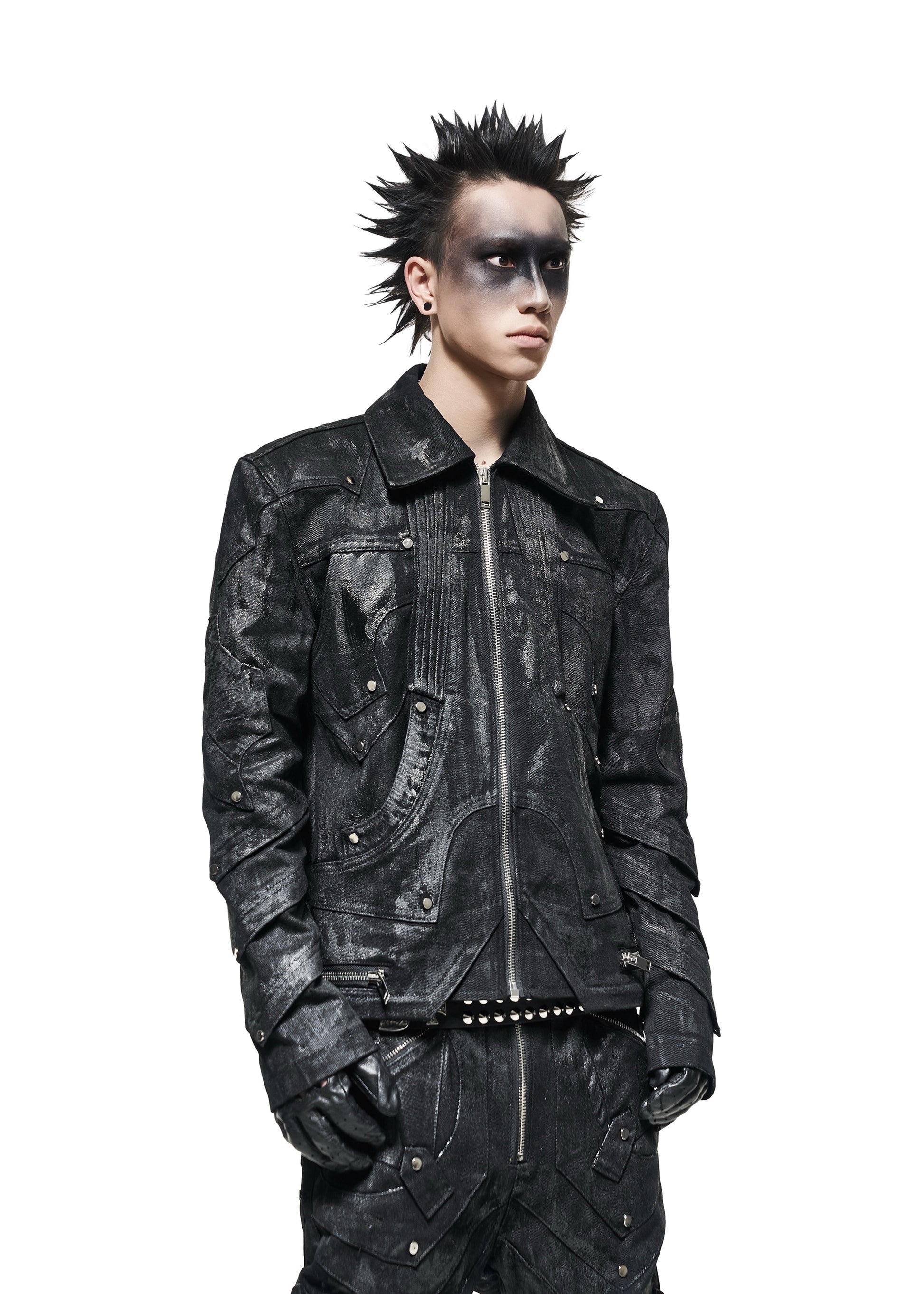 BLACK WAXED KNIGHT DENIM JACKET - AK090B