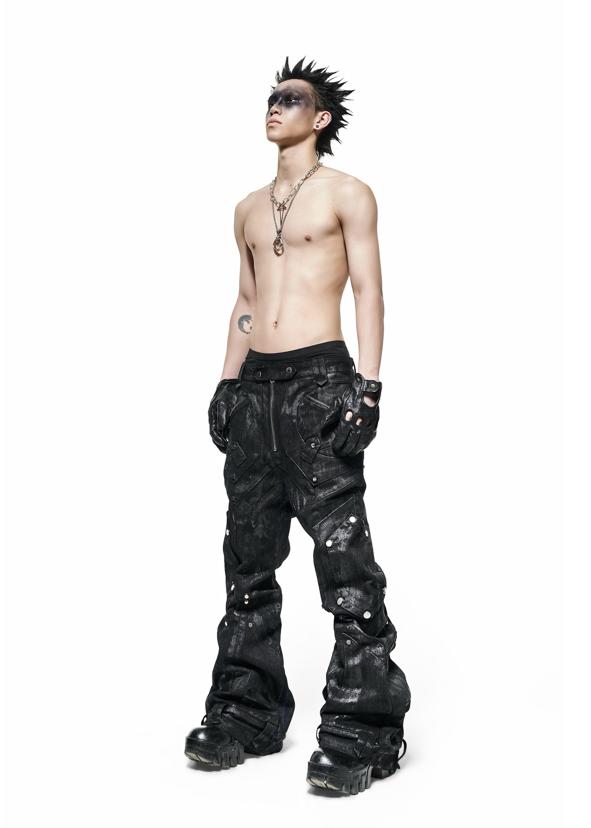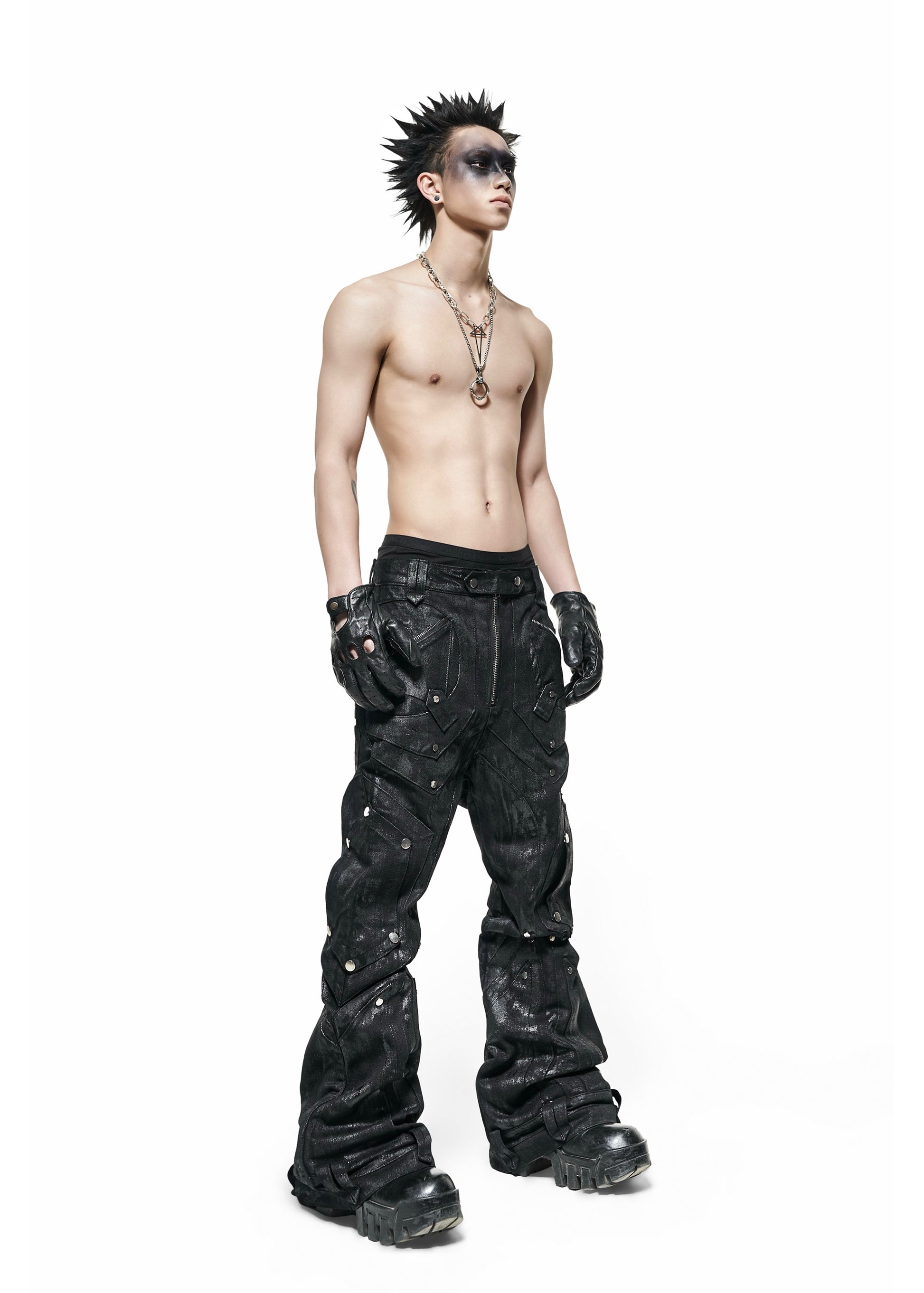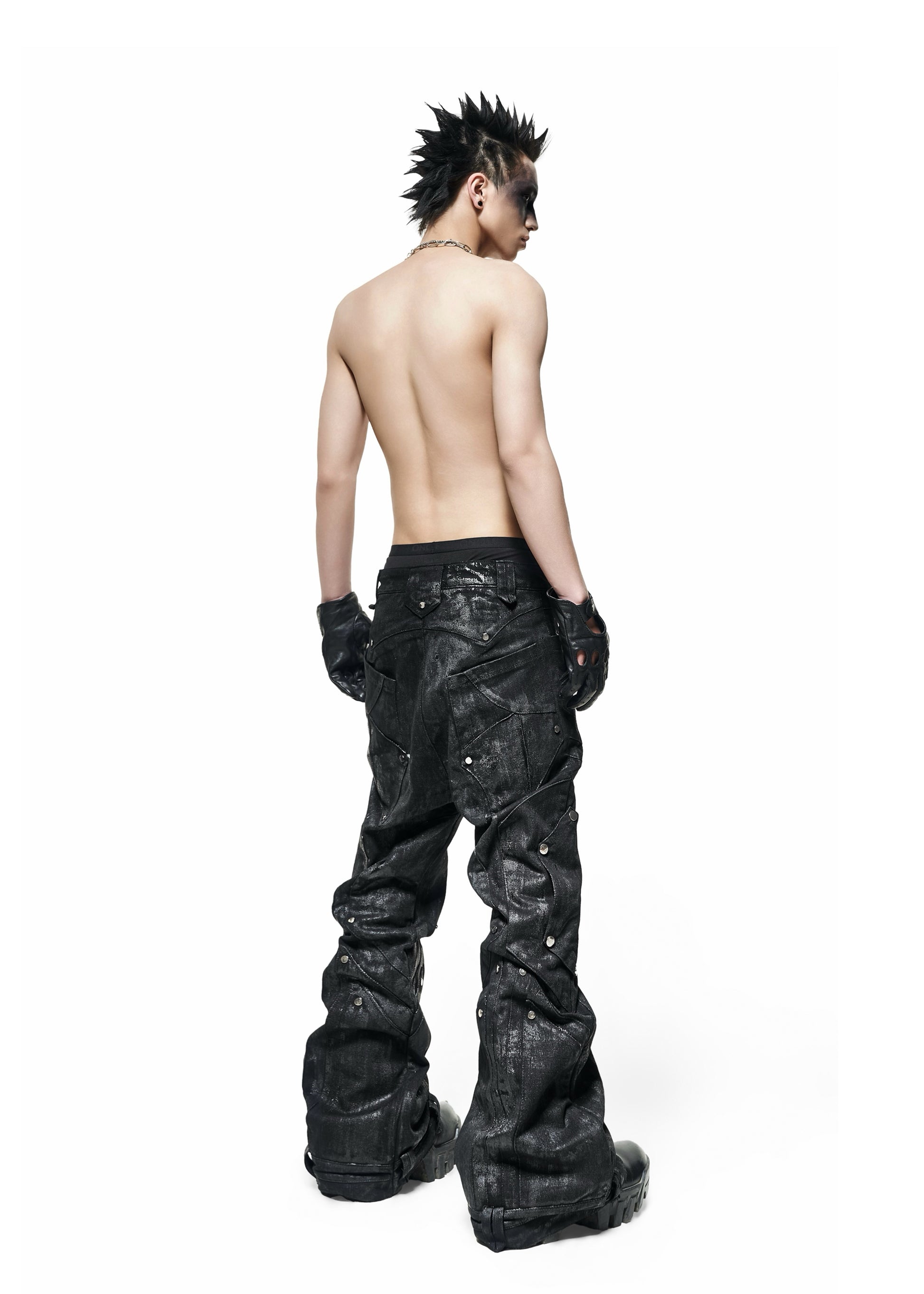DARK KNIGHT FLARE WAXED PANTS - QD116B