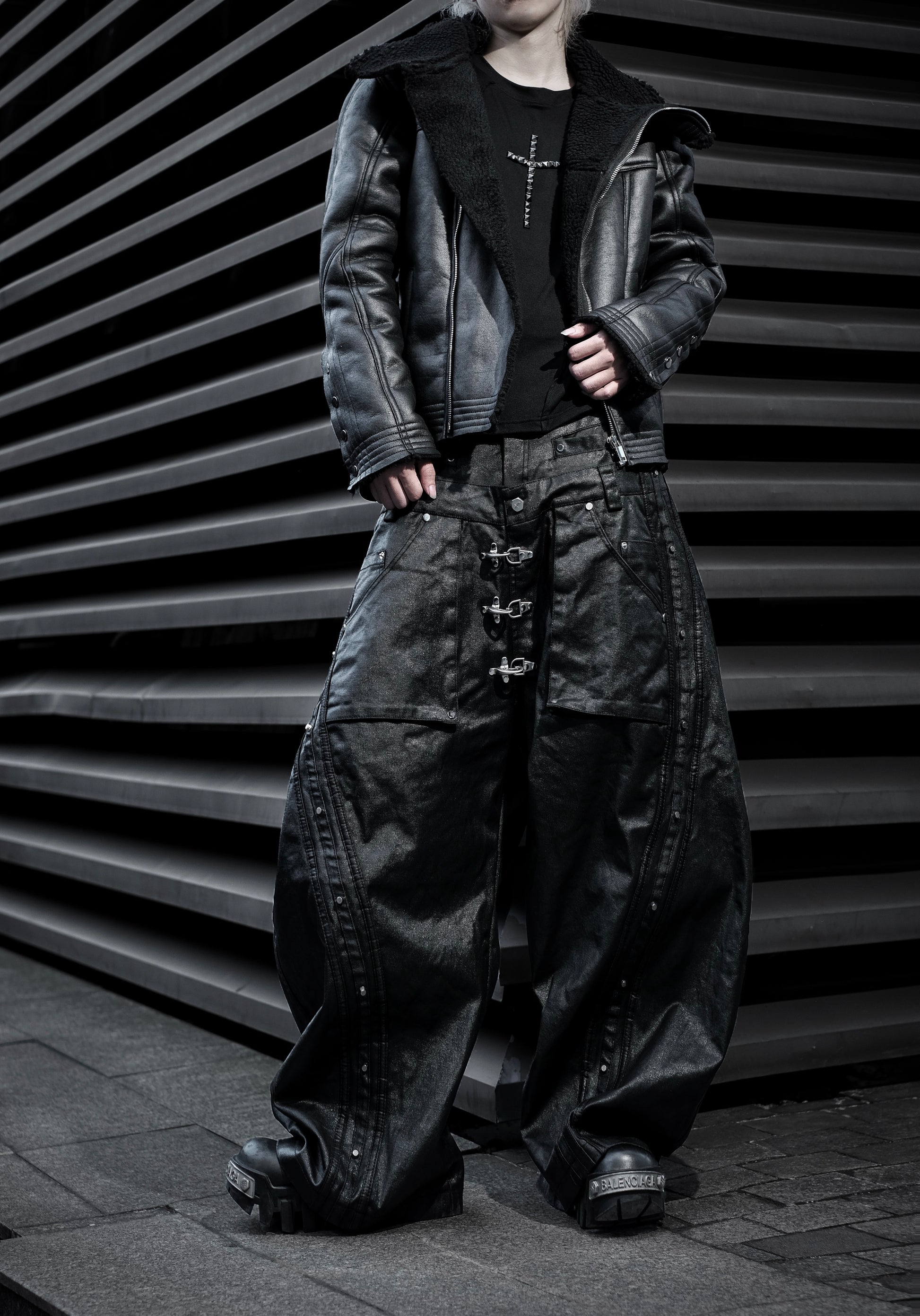 MOCK DOUBLE WAIST WIDE LEG PANTS - QD123