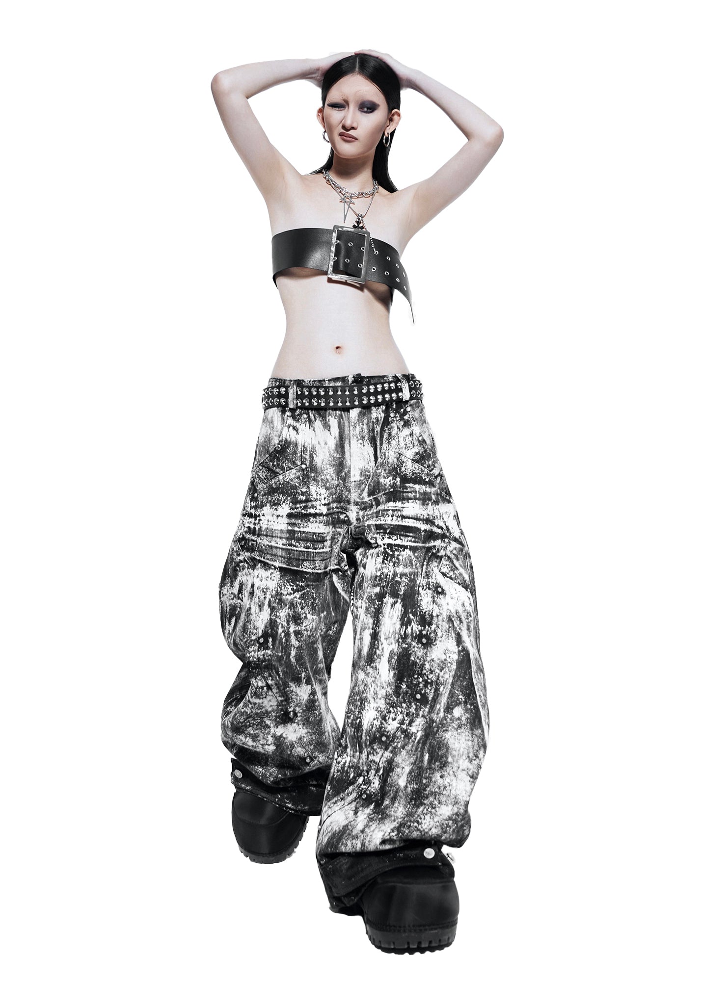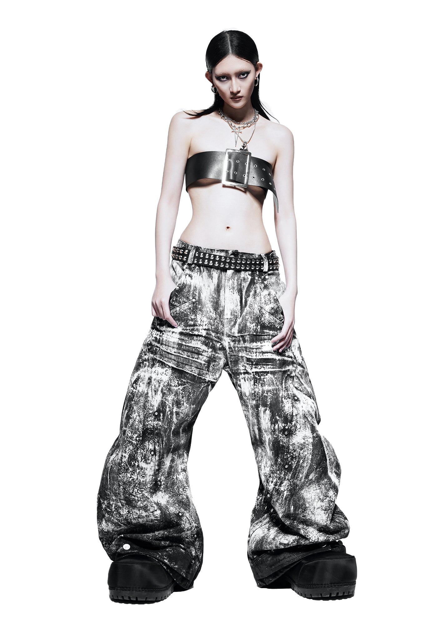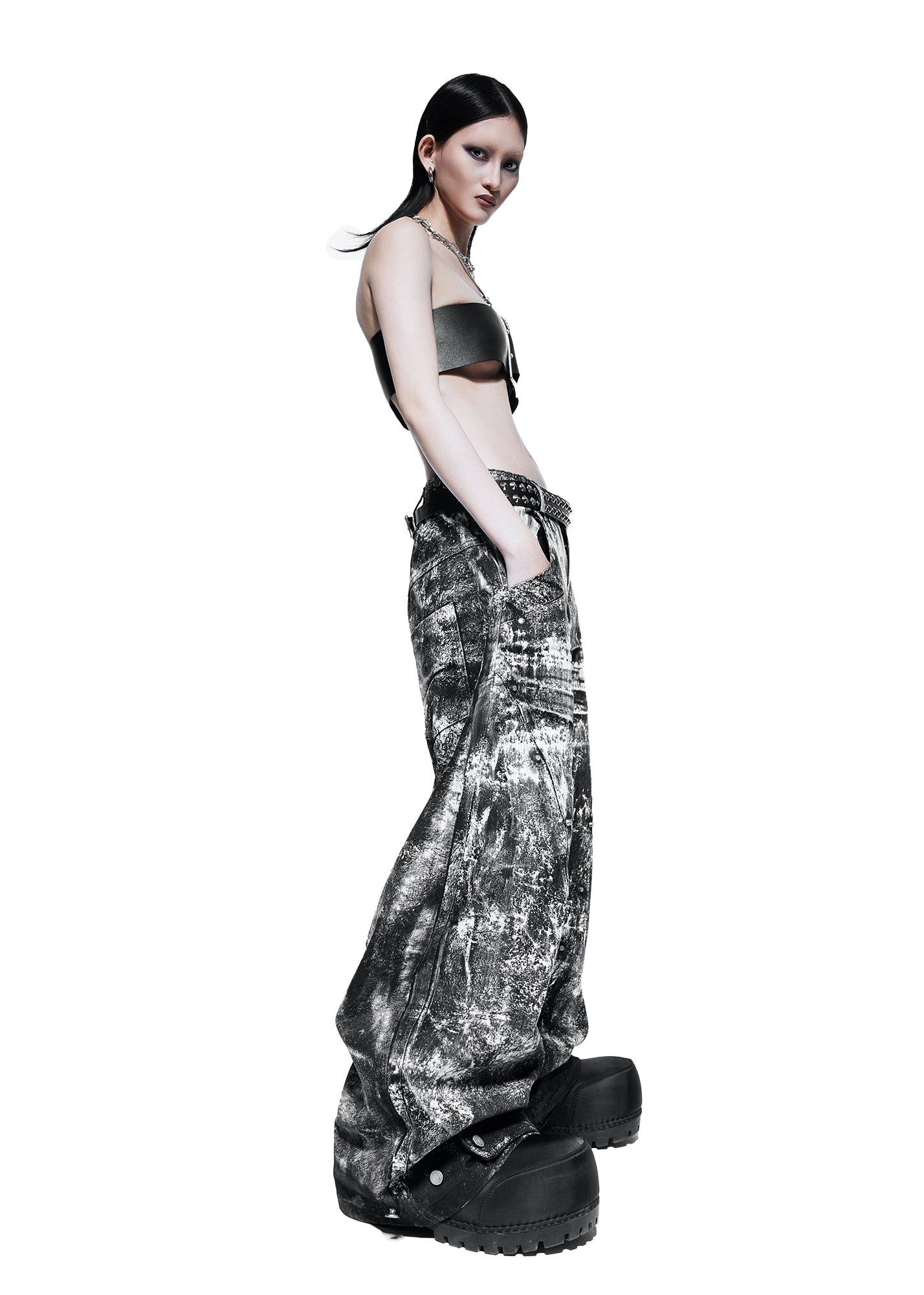 SMOKE WAXED S-WIDE PANTS - QD115C